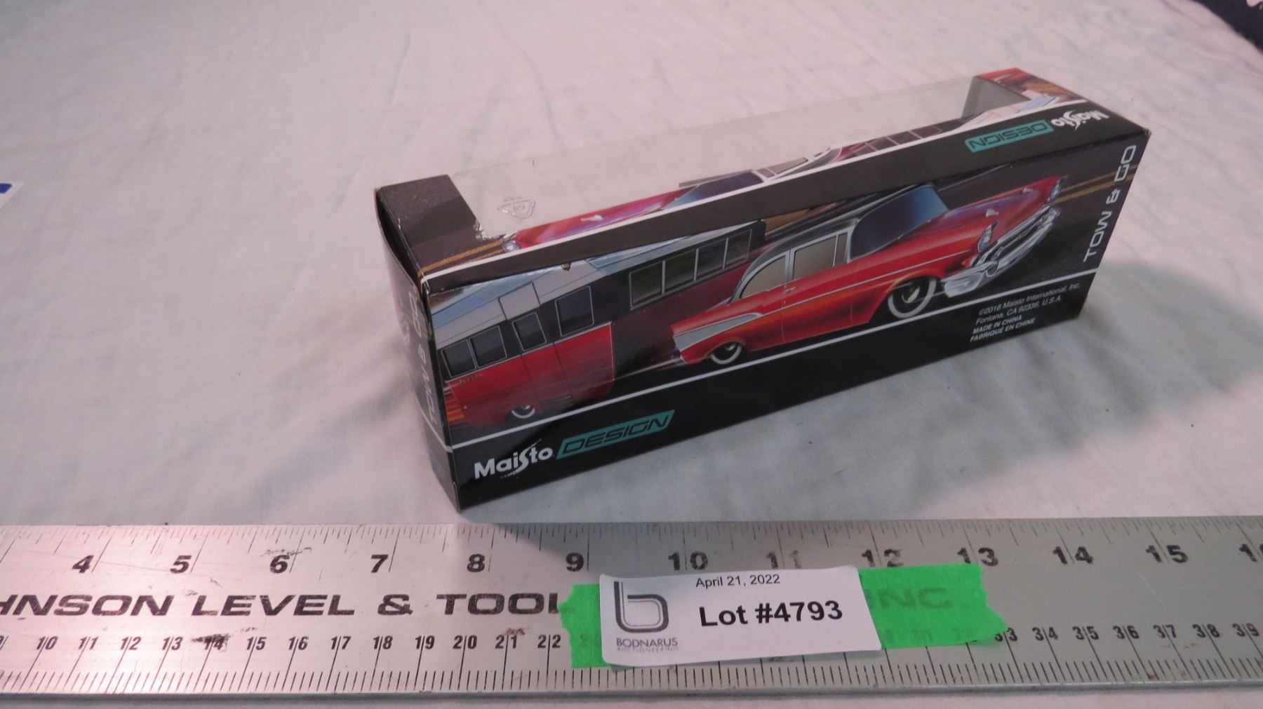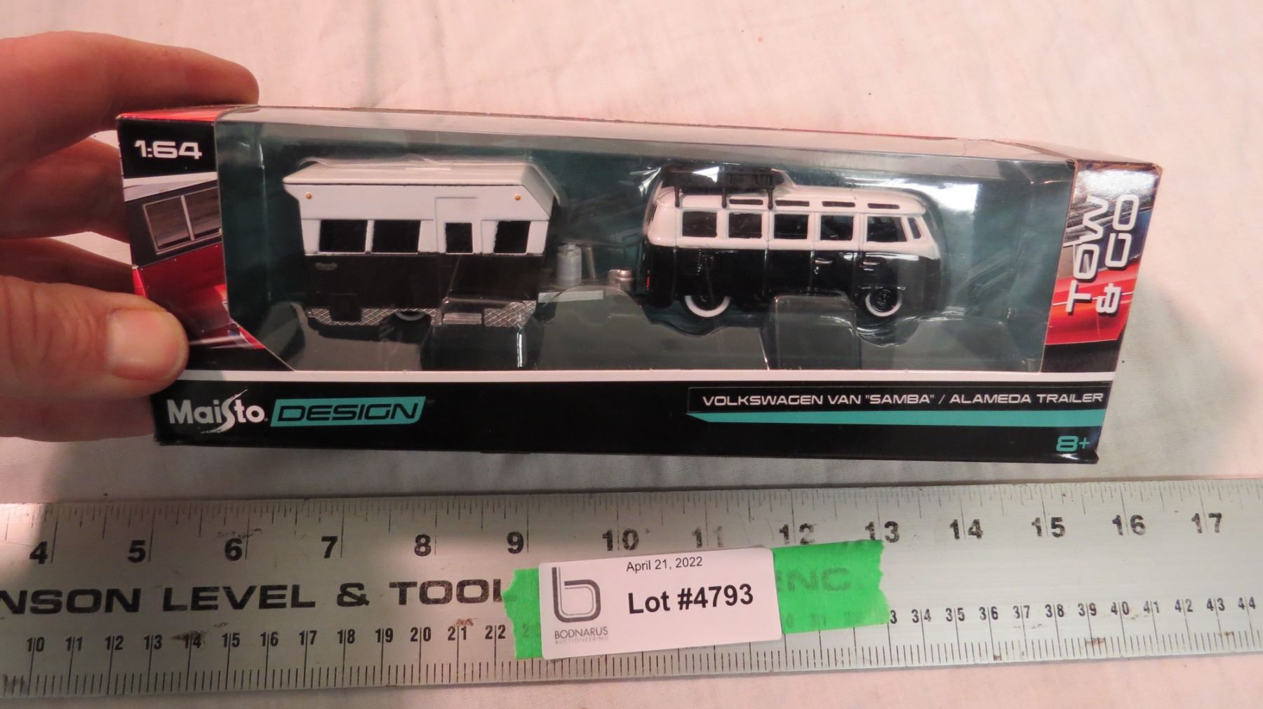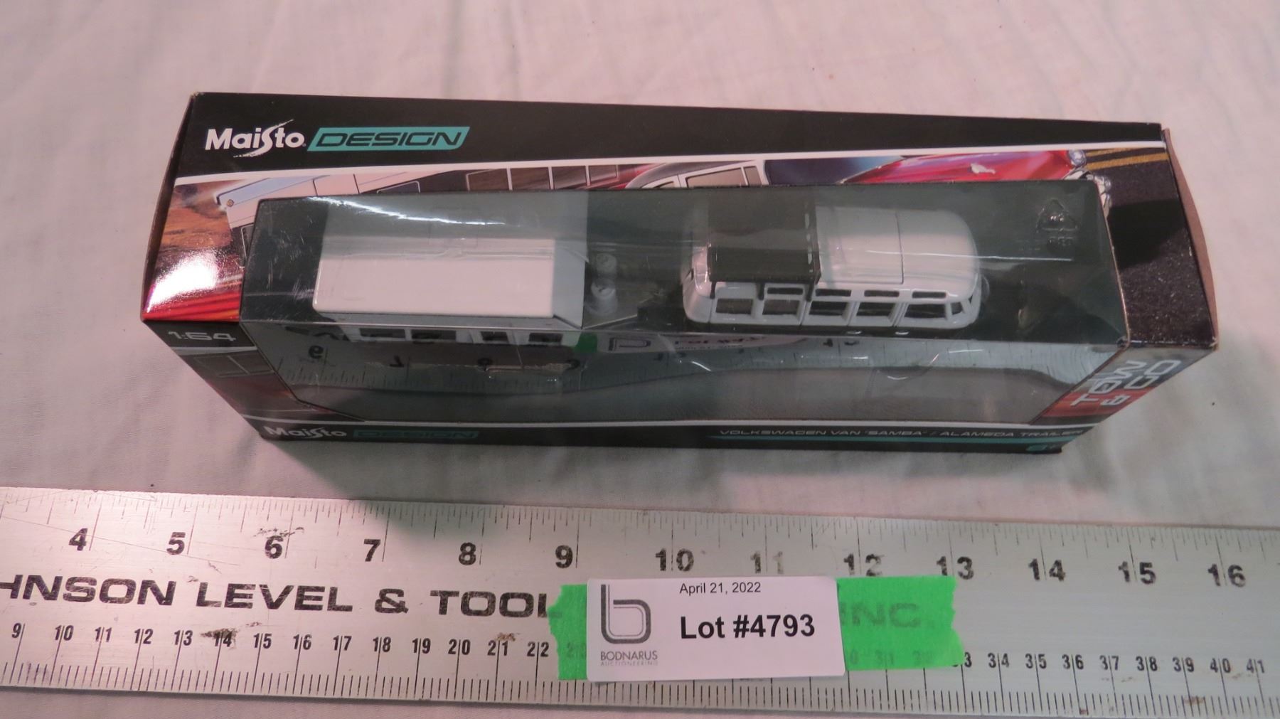 Maisto design Volkswagen van Samba with Alameda trailer - 1:64 scale