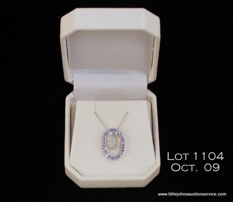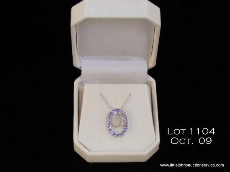 Majestic 10 karat white gold ladies custom design pendant with Tanzanite and diamonds weighing approx. 1.50 carats Retail $1,150.00. Estimate $300-$500.