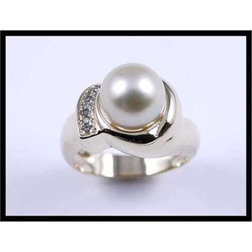 <tr><td>Title:Majestic 14K Yellow Gold Pearl and Diamond Ring</td></tr>