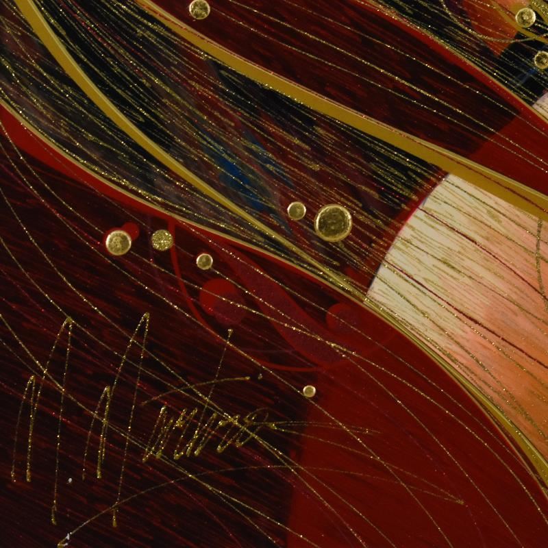 "Majestic Tapestry" is a limited edition mixed media silkscreen on paper by Martiros Manoukian, numbered and hand signed by the artist. This piece comes custom framed with a mirror-like finish. Includes Letter of Authenticity. Measures approx. 33.5" x 45.5" (frame), 23" x 35" (image).