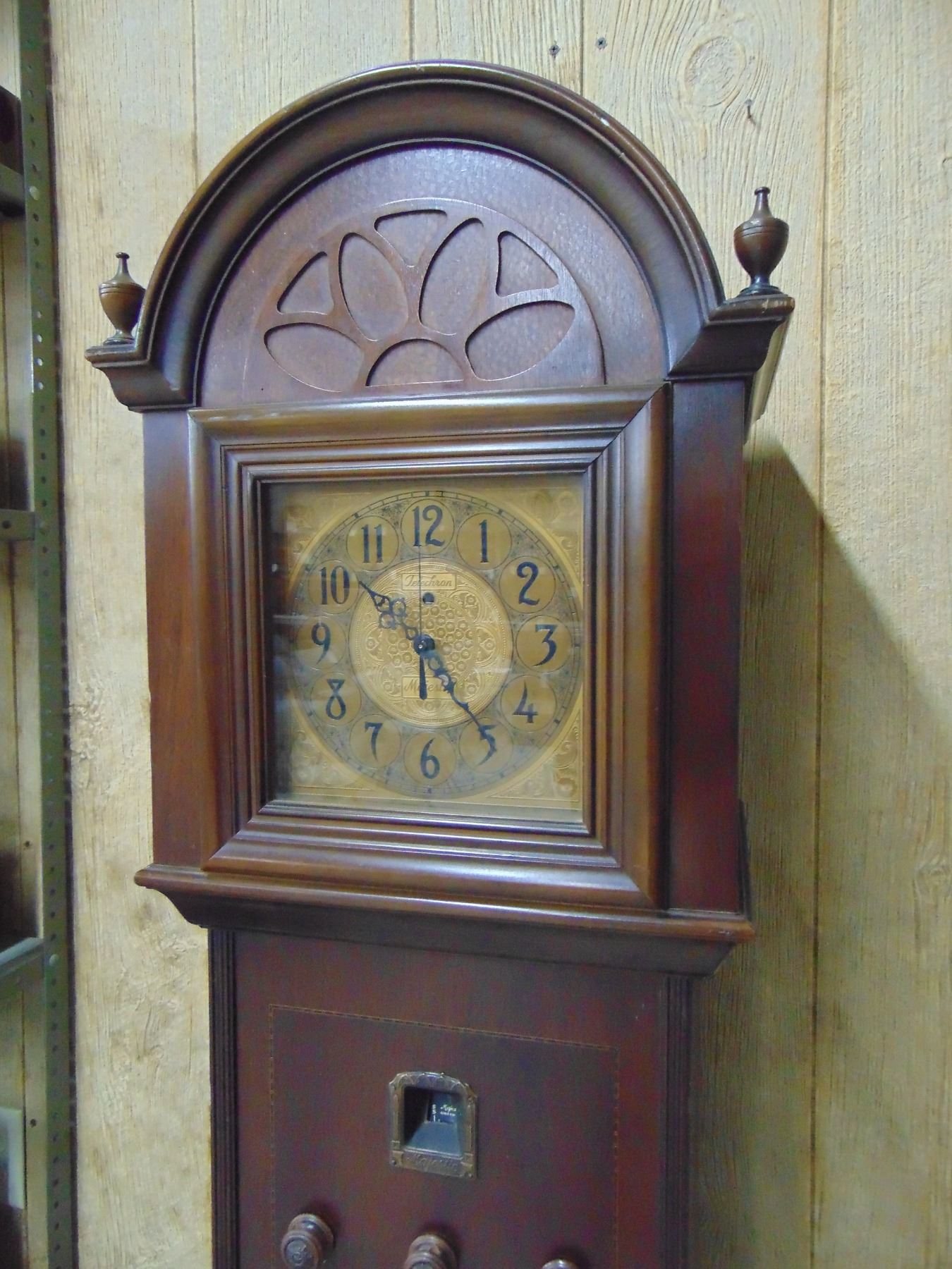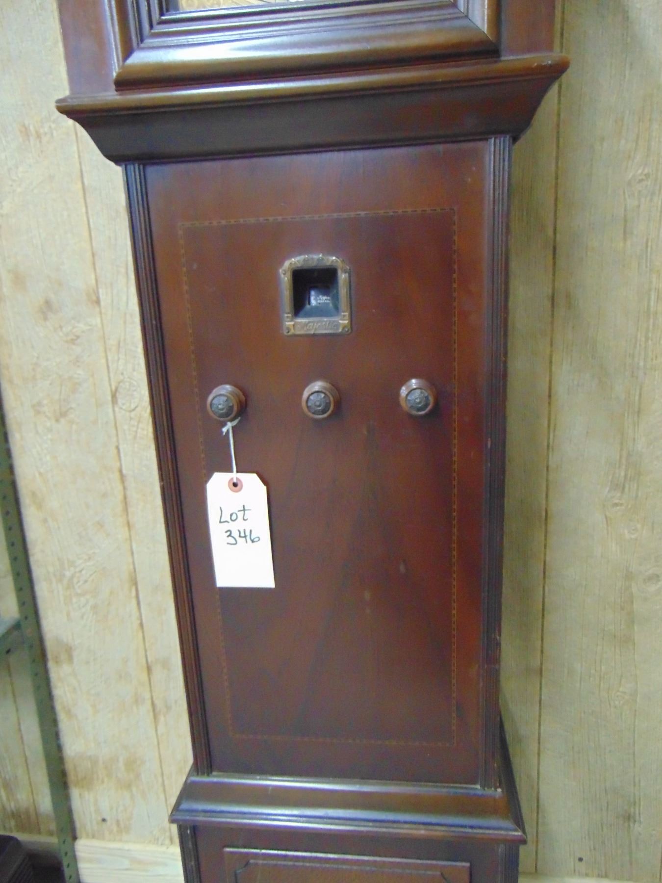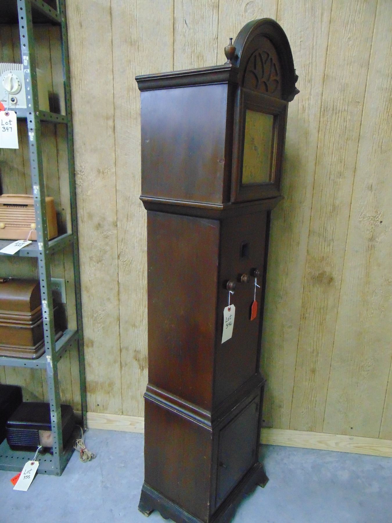 Grandfather clock/radio; model 156; original clock has been replaced with battery version; dial face is original