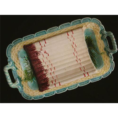 <tr><td>Title:Majolica Asparagus Serving Platter</td></tr>