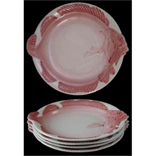 <tr><td>Title:Majolica Pink Fish Plate Set (4)</td></tr>
