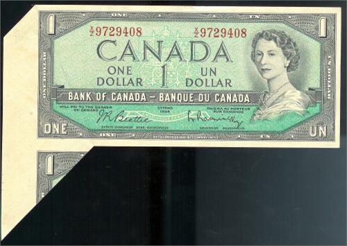 Major "Cutting" ERROR NOTE. 1954 $1 BC-37bi X/Z9729408 Large extra piece attached at bottom and left hand side. Rare and seldom seen! EF-AU.