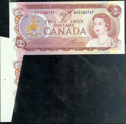 Major "Cutting" error note. $2 1974 BC-47a BG3250727 Uncirculated. Very large piece attached to the note. Rare and quite elusive!