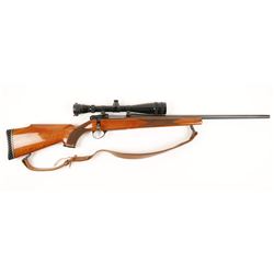 Blued lever-action hunting rifle with a 22" barrel. Includes a Lyman tang sight. Bluing is fading and has spots of surface rust and pitting. Ca...
