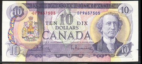 Major "Ink streak" error note. Large ink streak on face and back, BC-49b 1971 $10 DP9657505. Scarce Uncirculated.
