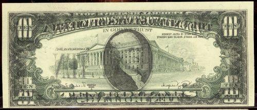 Major OFFSET error note. USA $10 1988 G55448049B Uncirculated.