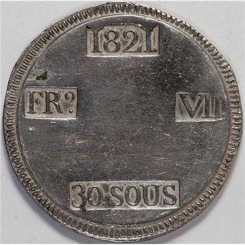 <B>Majorca, Ferdinand VII 30 Sueldos (Sous) 1821,</B></I> KM-CL53.1, VF-XF. Normal light contact marks for the grade.