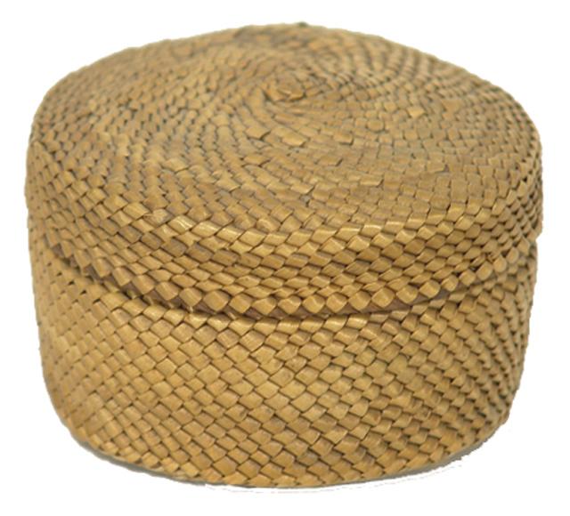 Early 1900s, Fine weave, older, lidded Nu-Chal-Nuth treasure basket with faded bird/duck forms; very good condition. 1-3/4" x 2-1/2"