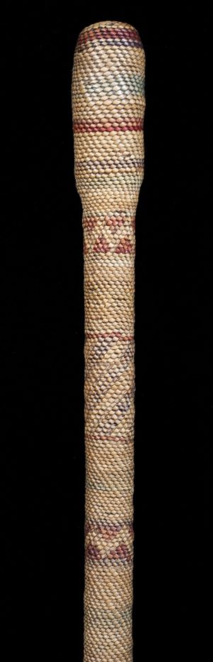 Makah Basketry Covered Cane with Geometric Design and Thimble Tip 34" L. Good Condition