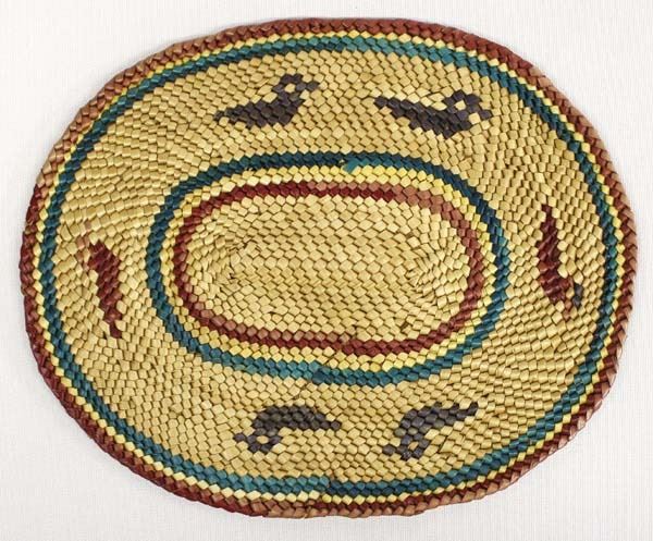 Makah Oval Basket Mat, ducks & fish decor.4 toned basket, measurs 6x8''
