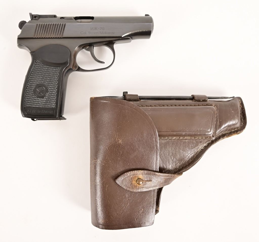 S/N PC2430. 3.75" barrel, good bore. Russian/Baikal manf. Very nice condition. Leather flap holster with spare magazine. Modern.
