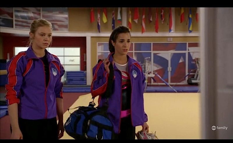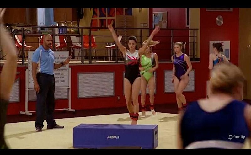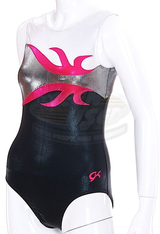 (ABC, 2009) This leotard was acquired by the production for use by Josie Loren's stunt double as "Kaylie Cruz". The leotard features a white, pink, silver and black design and remains in very good condition. Included with the leotard is a pink hair scrunchie.