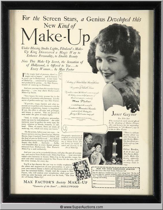Make-Up Advertisement 1929 Featuring Janet Gaynor and Olive Borden {Max Factor Collection}