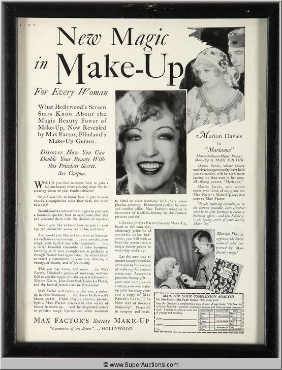Framed Make-Up Advertisement 1929 Featuring Marion Davies from the Max Factor Collection {9 1/2" L x 12" H}