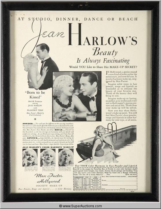 Make-Up Advertisement 1934 Featuring Jean Harlow Franchot Tone {Max Factor Collection}