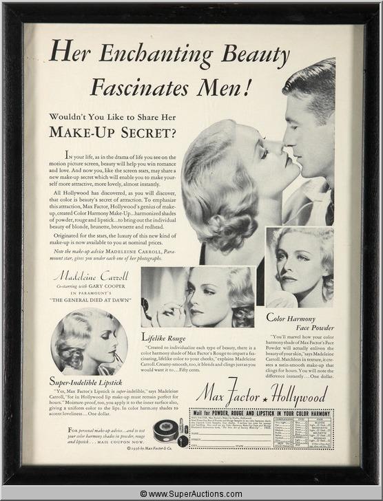 Make-Up Advertisement 1936 Featuring Madeleine Carroll and Gary Cooper {Max Factor Collection}
