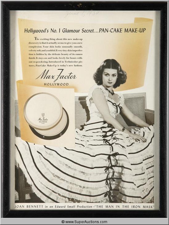 Framed Make-Up Advertisement June 1, 1939 Featuring Joan Bennett from the Max Factor Collection {10" L x 13" H}