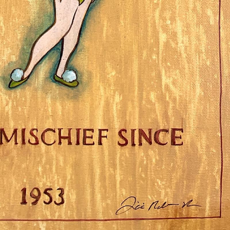 "Making Mischief" is a limited edition giclee on canvas by Tricia Buchanan-Benson, numbered and hand signed by the artist. This piece is licensed by Disney Fine Art. This piece come gallery wrapped. Includes Letter of Authenticity. Measures approx. 12" x 16" (image). There may be very minor scuffs on the corners and edges.