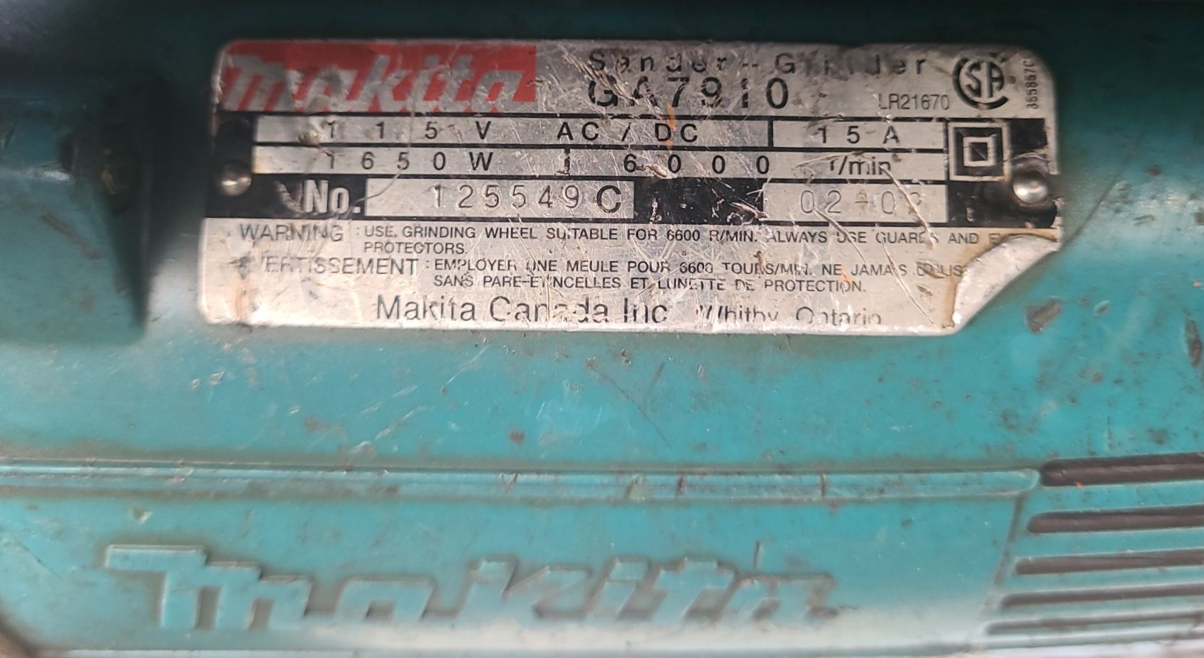 Makita Model JS1600 Electric Shear and Makita GA7910 Electric Grinder