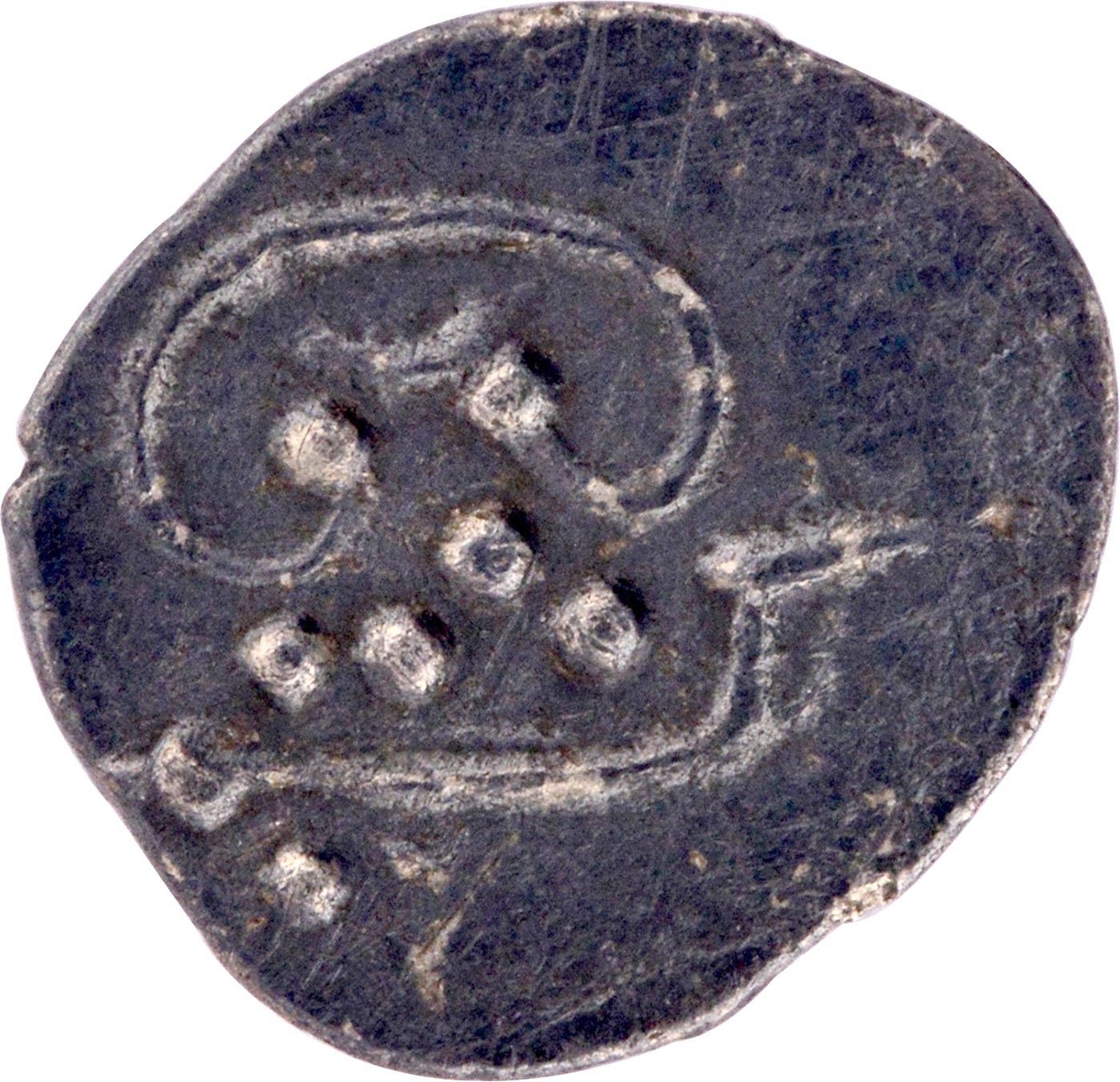 Post Vijaynagar Empire, Malabar & Cochin (16 Century CE), Silver Tara, Obv: Kannada "Sri", pellets and a stylized sword, Rev: a battle-axe, a crescent and an unknown emblem above a row of pellets, 0.08g, 6.31mm, (Numismatic Gleanings by B. Sarasan # Pg.31, 18), almost uncirculated, Extremely Rare.