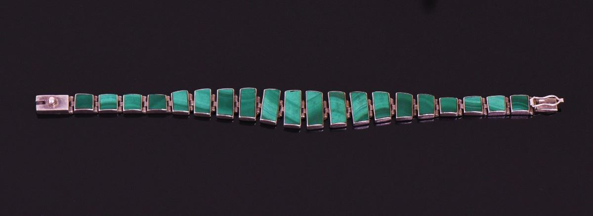 Malachite 950 Silver Bracelet, Mexico. Estima