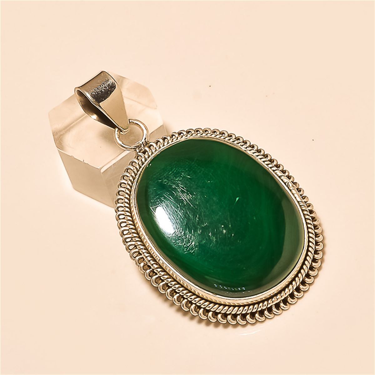 Malachite Pendant Solid Sterling Silver Length:2.25 inch Weight:22 gram #P-132