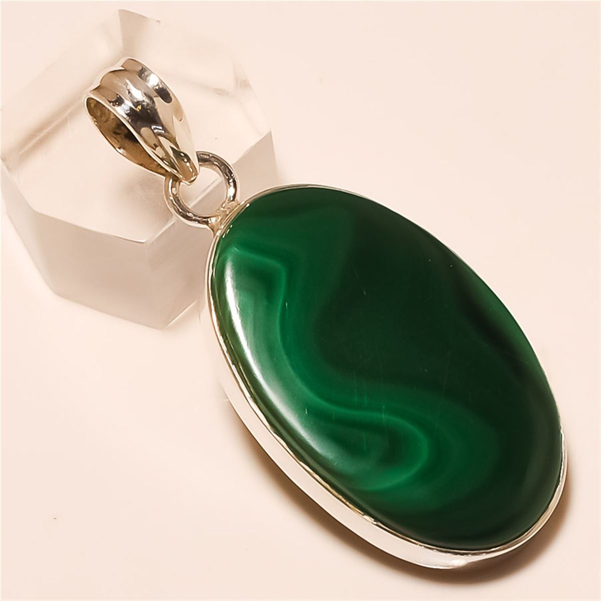 malachite Pendant Solid Sterling Silver Length:1.75 inch Weight:12 gram #P-238