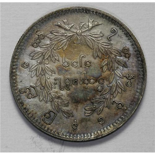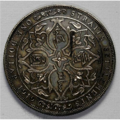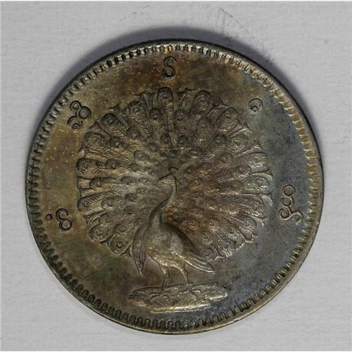 <B>Malay beauts:</B></I> Burma peacock Rupee (Kyat, ND 1852) KM-10 toned XF cleaned long ago, and Straits Settlements One dollar 1919 KM-33 Proof restrike, some verdigris on reverse. <BR><I>From the Monedas Oro Collection</B></I><BR><BR><b>Shipping:</b> Coin/Currency (<a target="_blank" href="http://www.heritageauctions.com/common/shipping.php">view shipping information</a>) <BR><BR><B>Important notice