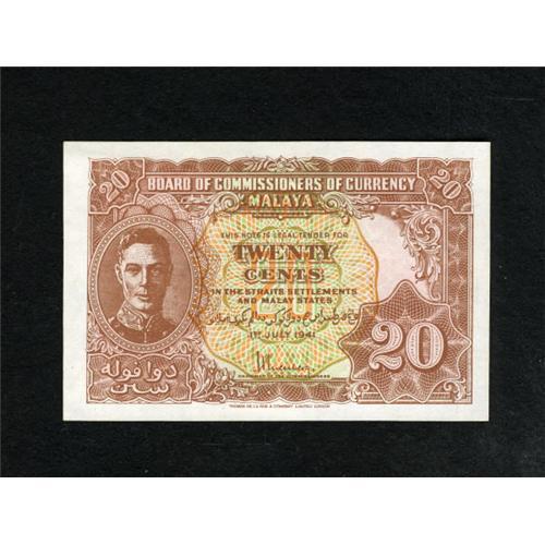 <B>Malaya </B></I>20 Cents 1941 Pick 9b<BR> This is a nicely preserved <B>Choice Crisp Uncirculated</B></I> note.<BR><BR><b>Shipping:</b> Coins & Currency (<a target="_blank" href="http://www.heritageauctions.com/common/shipping.php">view shipping information</a>)