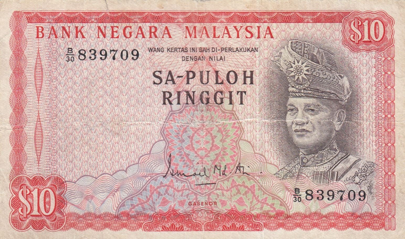 Malaysia, 10 Ringgit, 1967, VF (-), p3br/serial  number: B/30 839709