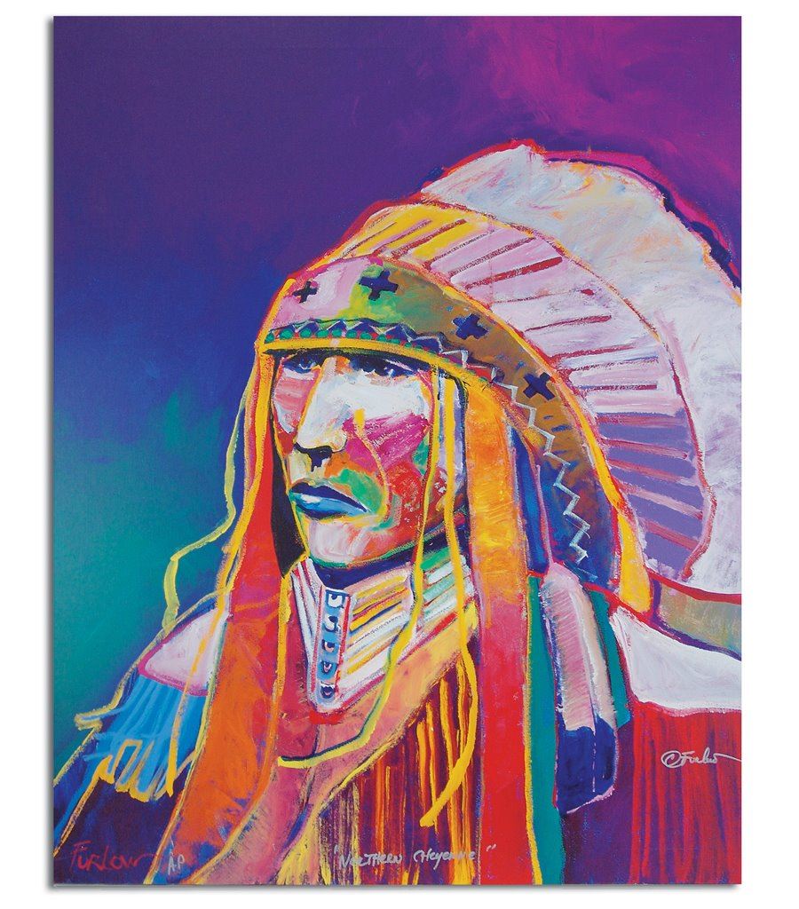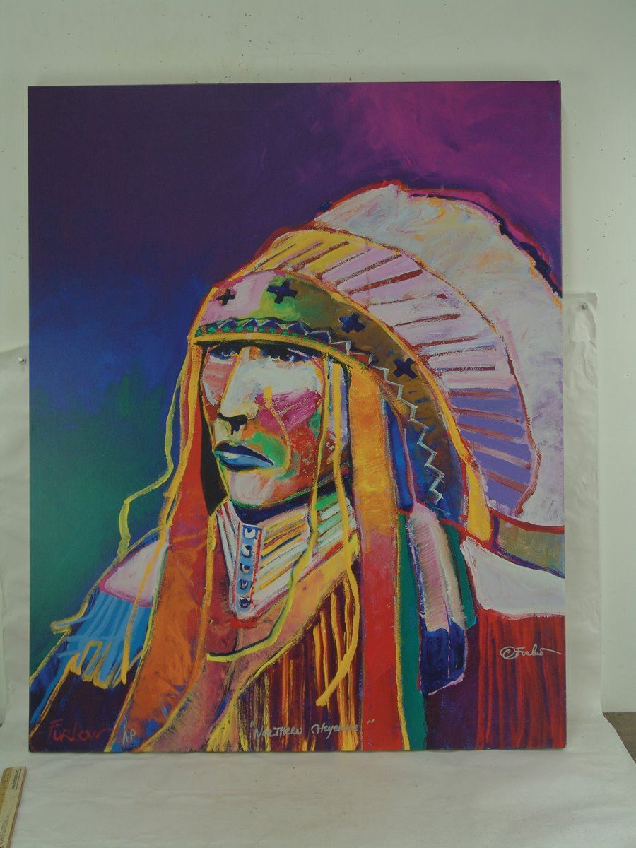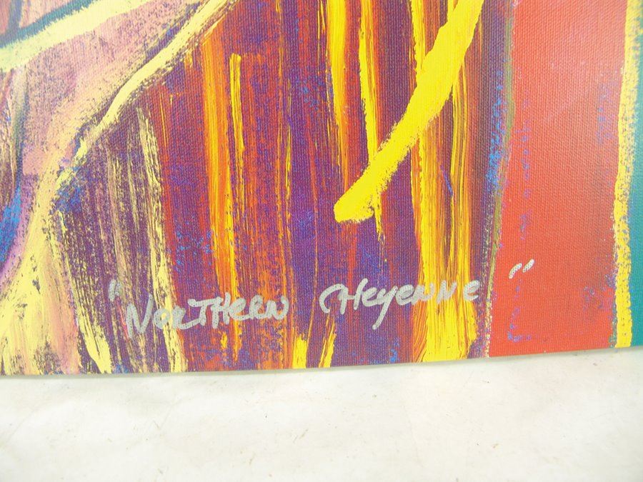 Large and colorful hand signed limited edition (#AP/200) enhanced giclée on canvas titled "Northern Cheyenne." Excellent condition, brilliant colors. Unframed.,Early 2000s,38" x 30"
