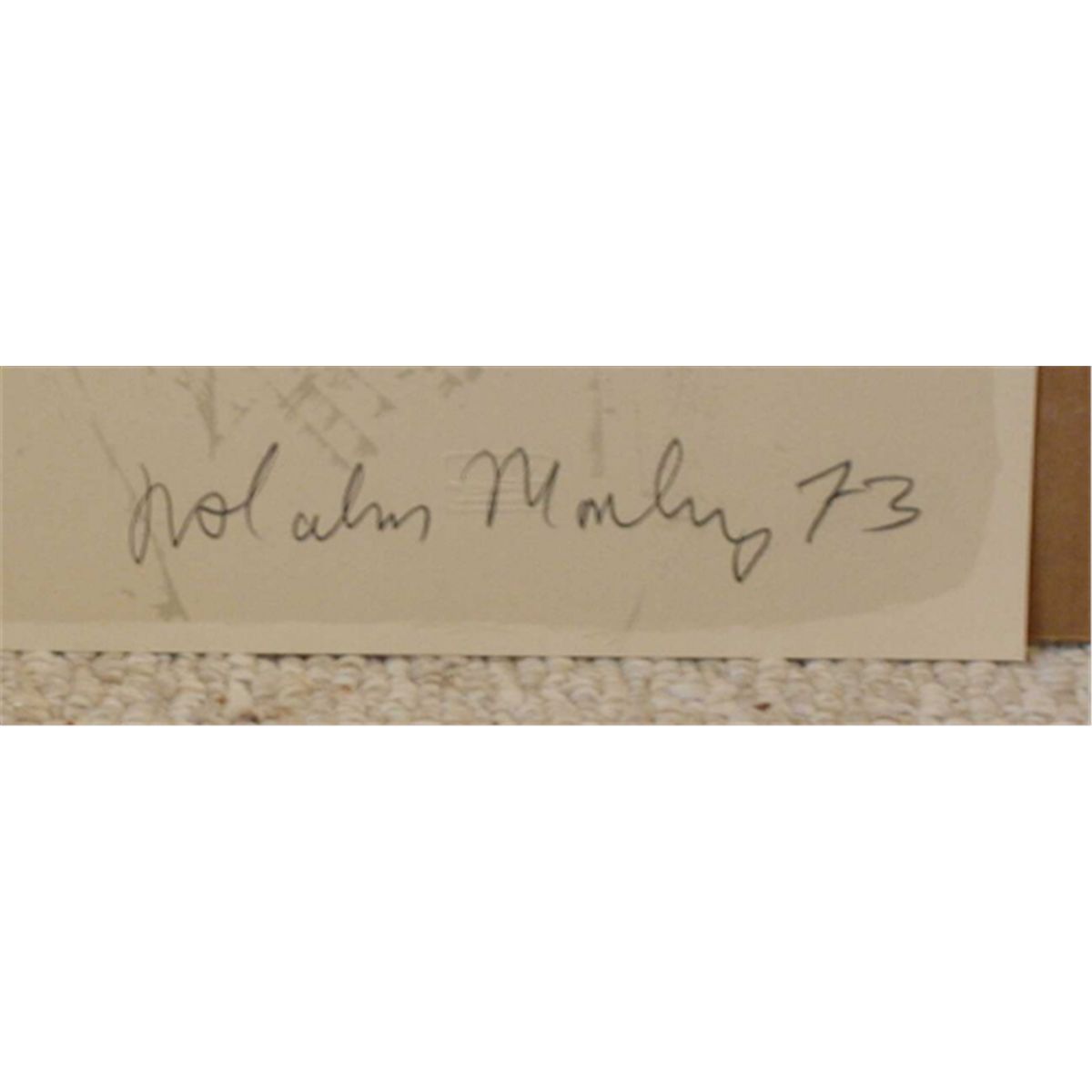 From the "Arles/Miami" Portfolio of 5 lithographs published in 1973. These were the first original, hand drawn prints ever created by Morley and, as such, are important for any serious collection. 24"x34" on Arches paper. Signed in pencil by the artist and dedicated to the Director of the Atelier aside from the edition of 150. Subject matter is a fold-out picture postcard of Miami. . Domestic Shipping-$20. International depends upon location.