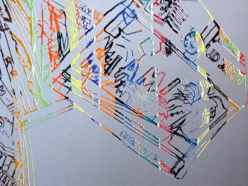 From the "Arles/Miami" Portfolio of 5 lithographs, created from stones, and published in 1973. These were the first original, hand drawn prints ever created by Morley and, as such, are important for any serious collection. . This image was printed in a rainbow of colors on a silver background. 24"x34" on Arches paper. Signed in pencil by the artist and dedicated to the Director of the Atelier aside from the edition of 150. Subject matter is a fold-out picture postcard of Miami. “This very unique print was made by printing it in 20 colors using 5 stones with 4 colors each. As a result of scrupulous matching, the image shifts color in narrow ripples from crimson to purple to green to dark blue to peacock blue to yellow and so on. The linear outline is dissolved by the elusive definition and by the rhythmic repetition of color.” Lawrence Alloway.. Domestic Shipping-$20. International depends upon location..