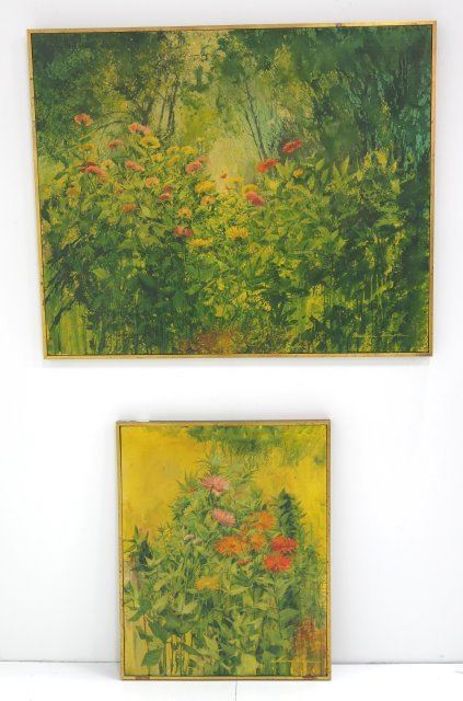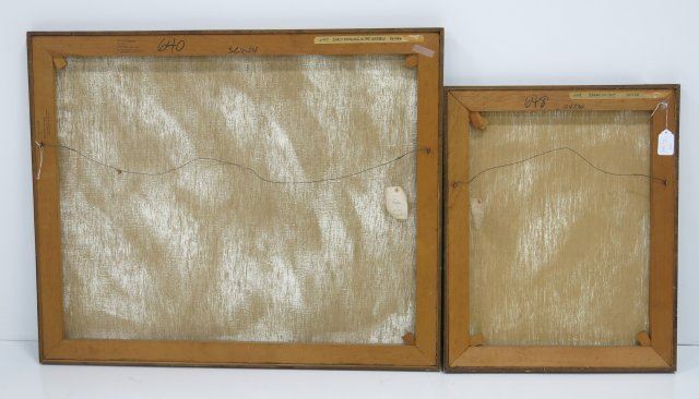 Oil on canvas. Framed. Both signed lower right. Both titled rear. Malcolm Thompson, American (1916-). Largest approx. 36" x 44" unframed, smaller approx. 30" x 24" unframed.