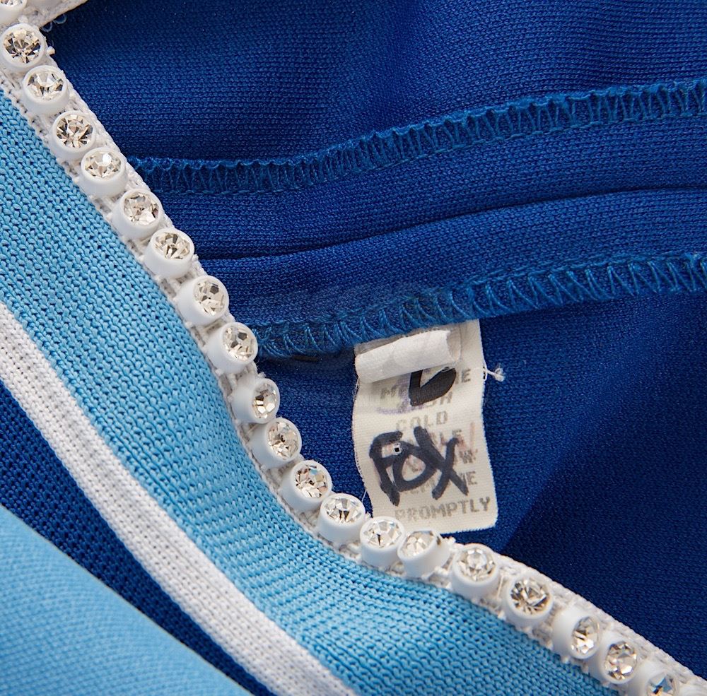 (20th Century Fox, 2000-2006) These cheerleader uniforms were acquired by the production for use by various actors in the season one episode titled "Cheerleader". The uniforms feature the "Wildcats" colors and logo. One uniform consists of a shell top, skirt, and cheer bloomers, as seen in the episode, the second uniform has been modified for use in a later unidentified Fox production, with the Wildcats lettering and name badge removed (though their outlines are still visible) and with white plastic edging and faux stones applied to the top and pants.