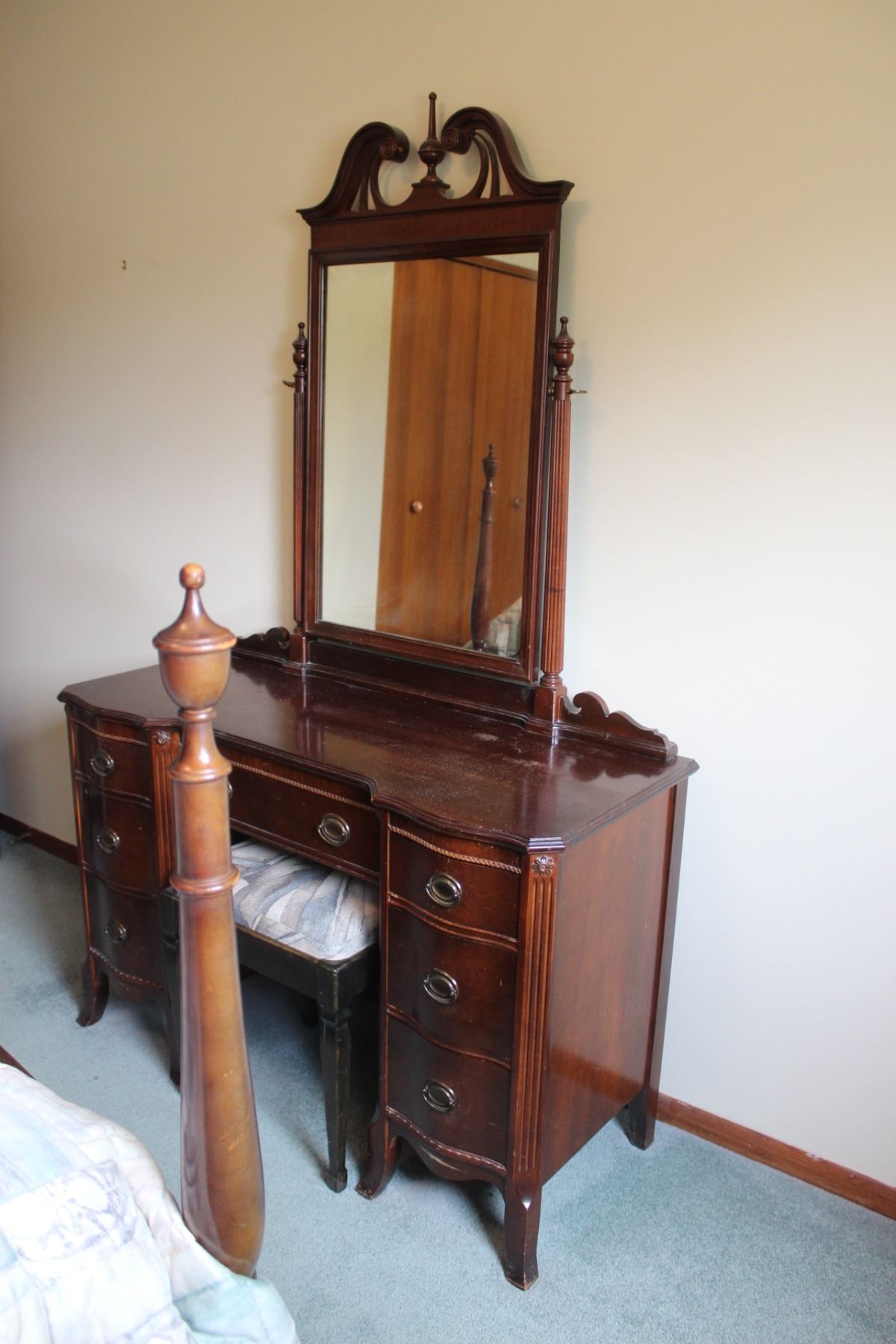 Malcom Make-up Vanity (Some Wear on Top)- 46"x19"x74"w/Mirror Height w/Stool