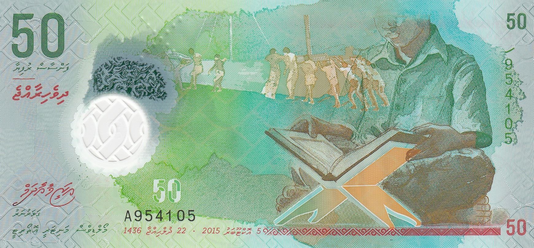 Maldives, 50 Rufiyaa, 2015, UNC, p28br/Polymer, serial number: A954105