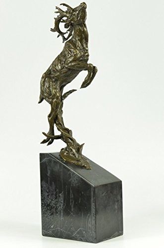 The Male Deer Comes Down The ForestS Edge Offering A Series Of Vocalizations For The Mountains To Echo Across The Sky And Lands. He Seems As Though He Is On A Mission To Find A Mate. His Crown Of Tall Antlers Will Be Used To For Sparring Antler Wrestling With Another Male To Gain The Rights Of Dominance And Courtship With The Desired Female. The Handmade Bronze Sculpture Was Cast Using The Age-Old Method Of Lost-Wax Casting And Stained With A Brown Patina Finish For Perpetuation. He Is Mounted Upon A Black Circular Marble Base. Bronze dimensions with marble base: Height 21 X Width 14 inches. Weight: 22lbs.