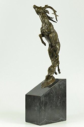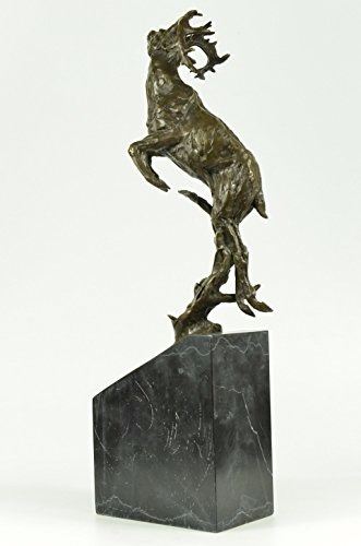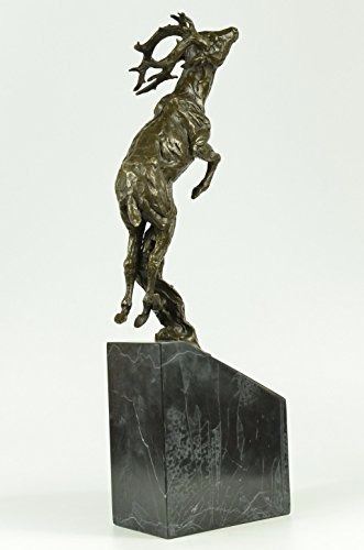 The Male Deer Comes Down The ForestS Edge Offering A Series Of Vocalizations For The Mountains To Echo Across The Sky And Lands. He Seems As Though He Is On A Mission To Find A Mate. His Crown Of Tall Antlers Will Be Used To For Sparring Antler Wrestling With Another Male To Gain The Rights Of Dominance And Courtship With The Desired Female. The Handmade Bronze Sculpture Was Cast Using The Age-Old Method Of Lost-Wax Casting And Stained With A Brown Patina Finish For Perpetuation. He Is Mounted Upon A Black Circular Marble Base. Bronze dimensions with marble base: Height 21 X Width 14 inches. Weight: 22lbs.Please Note: This is a reproduction bronze sculpture from the original molded and signed. This featured bronze sculpture is a recast after the original, and has been done recently. This 100% bronze sculpture is an abstract piece certain to be a conversation piece.Please Note: This is a reproduction bronze sculpture from the original molded and signed. This featured bronze sculpture is a recast after the original, and has been done recently. This 100% bronze sculpture is an abstract piece certain to be a conversation piece.