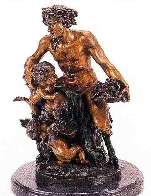 "Male Satyr Group" Bronze Sculpture - After Clodion - Beautiful Color Patina - Mounted On A Fine Italian Marble Base - Beautifully Detailed - Signed - Mint Condition - 20"H X 11"W - Lost Wax Cast Bronze