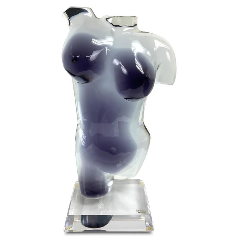 "Male and Female Torsos" is an acrylic sculpture set by Shlomi Haziza, hand signed by the artist (both figures). Includes Letter of Authenticity. Measures approx. 14.5" x 20" x 8" (male figure); 11" x 22" x 7" (female figure). Please note:There are minor scratches on both sculptures.