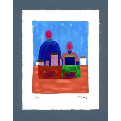 This lithograph is limited edition of 295 pieces only. Each lithographs have autotype signature of artist and number. Paper of hand's processing is used for the lithographs. These lithographs lay on blue mat. It create very kinglike impression. (Mat included in the price)