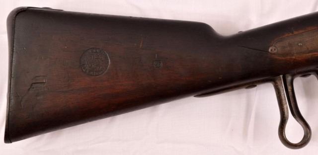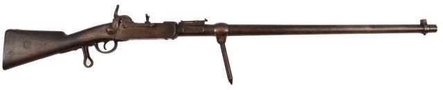 Approximately 61.5" long, weighing 35 pounds, and .75 caliber. With "pistol grip" trigger guard. The breech block is completely removable. The serial number on the gun is 29 and the breech block is 28.