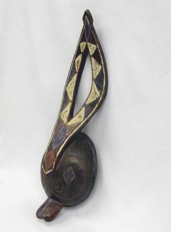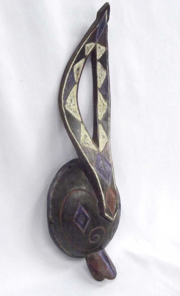 Mali Wooden Child's Forehead Mask, Bamana Tribe. Used in agricultural rituals, 17''H x 5'5'' W. Buyers Pay Actual Shipping and Handling Charges(see terms and conditions for more information)