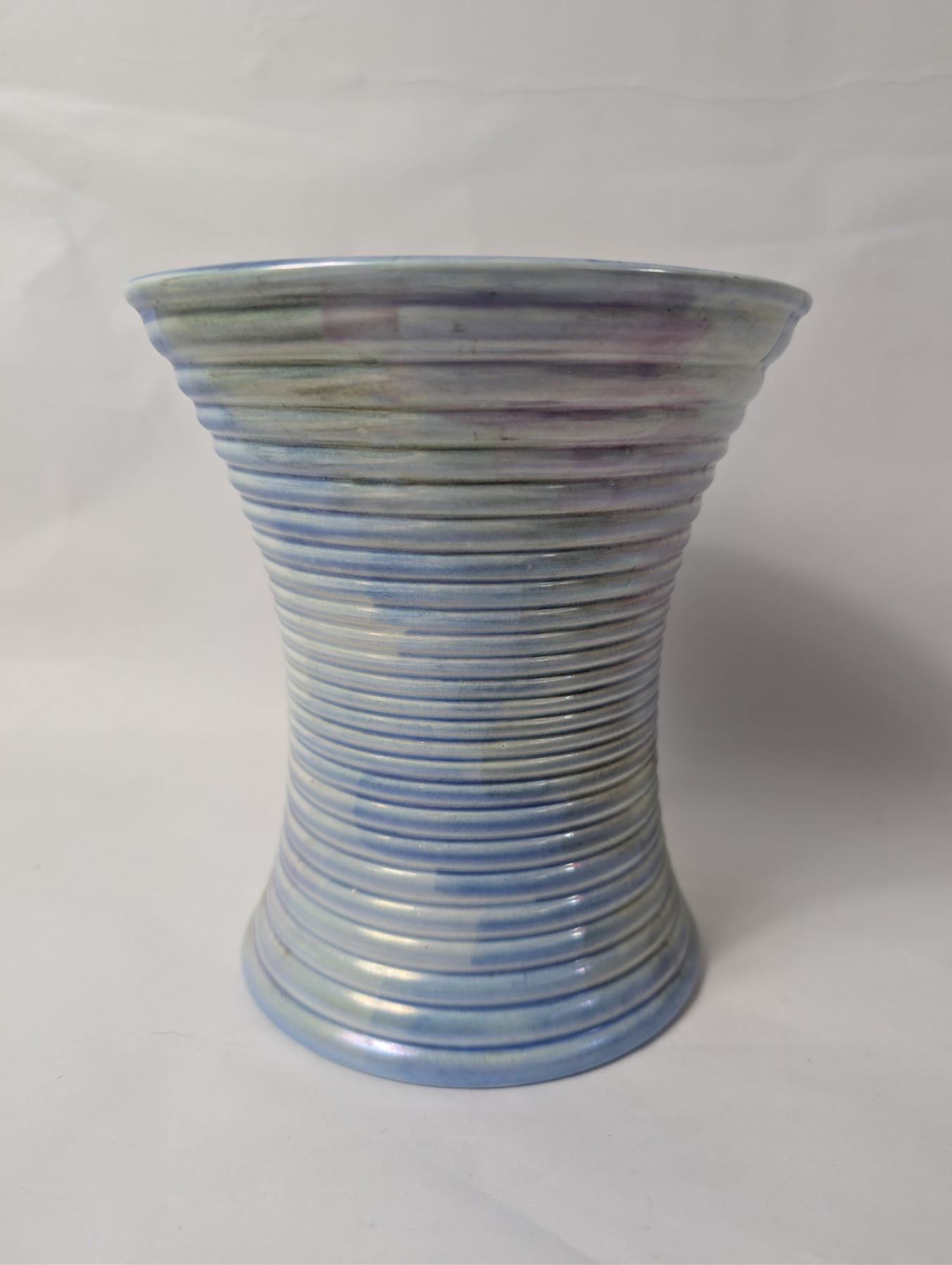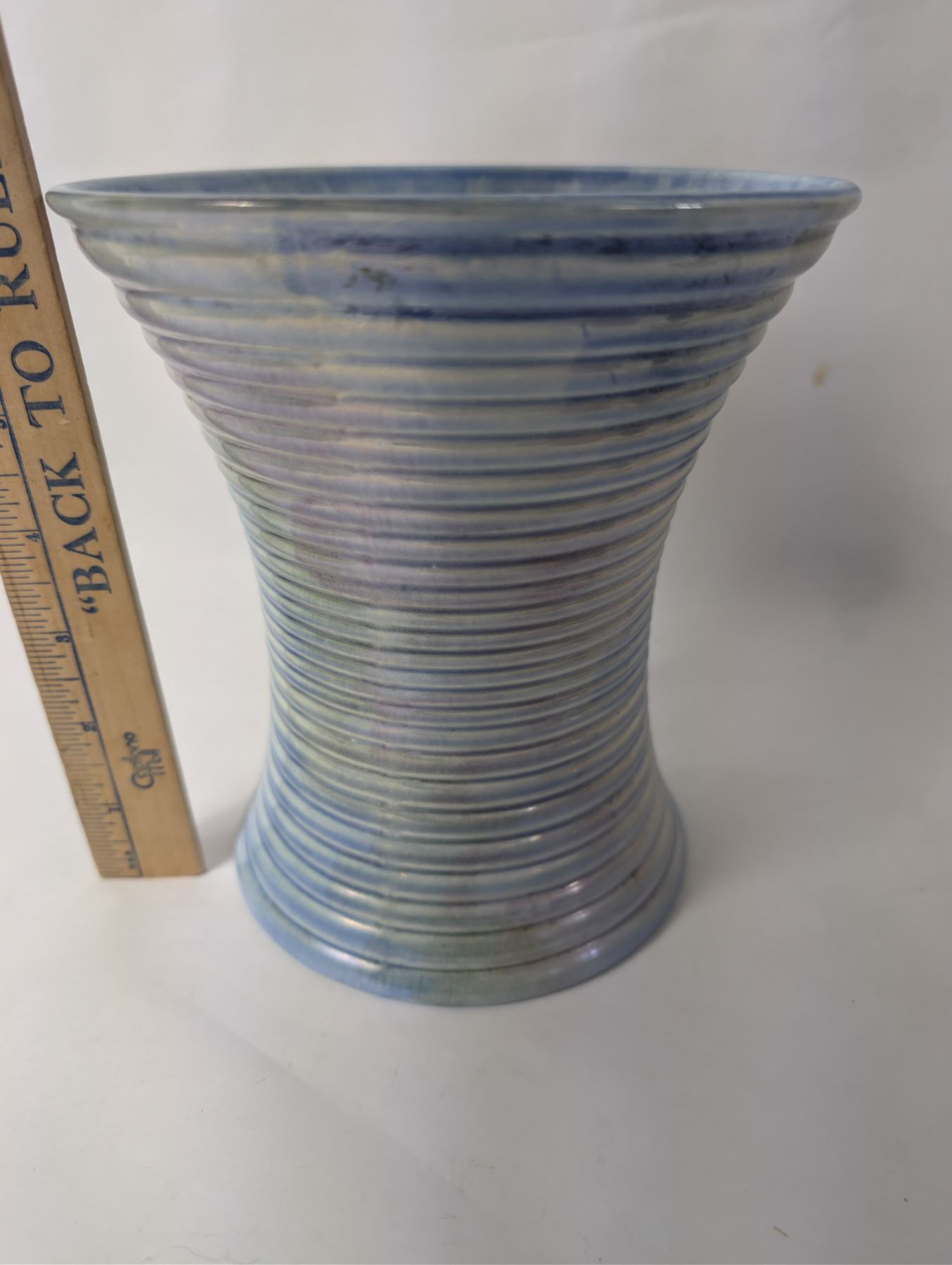 Maling Ribbed English Pottery Vase Iridescent Blue