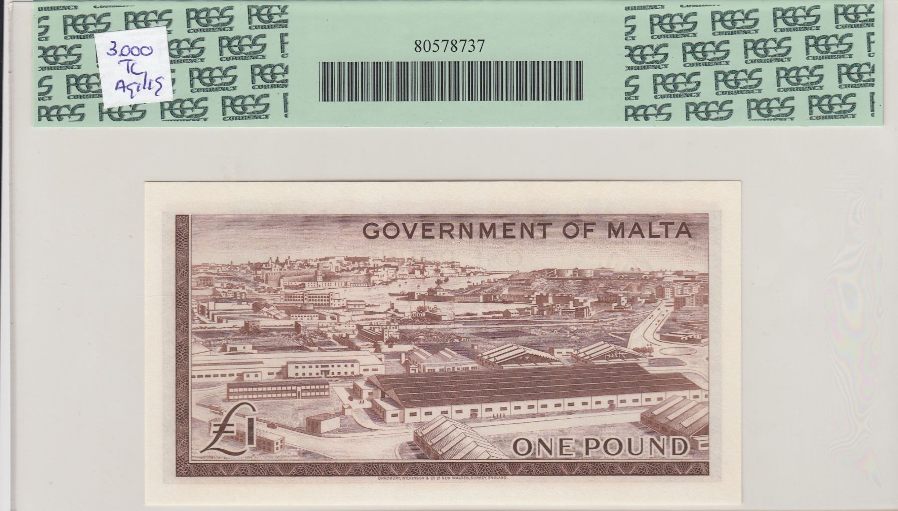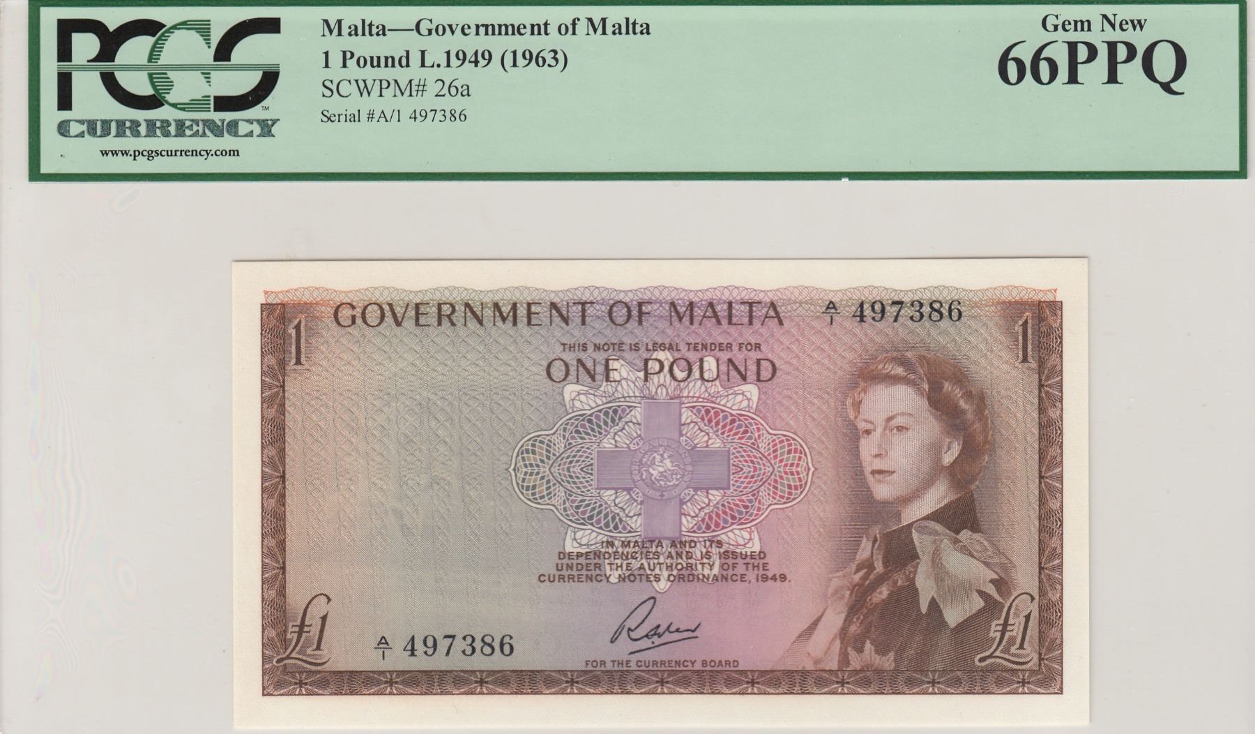 Malta, 1 Pound, 1963, UNC, p26abr/PCGS 66 PPQ, Queen Elizabeth II portrait, serial number: A/1 497386