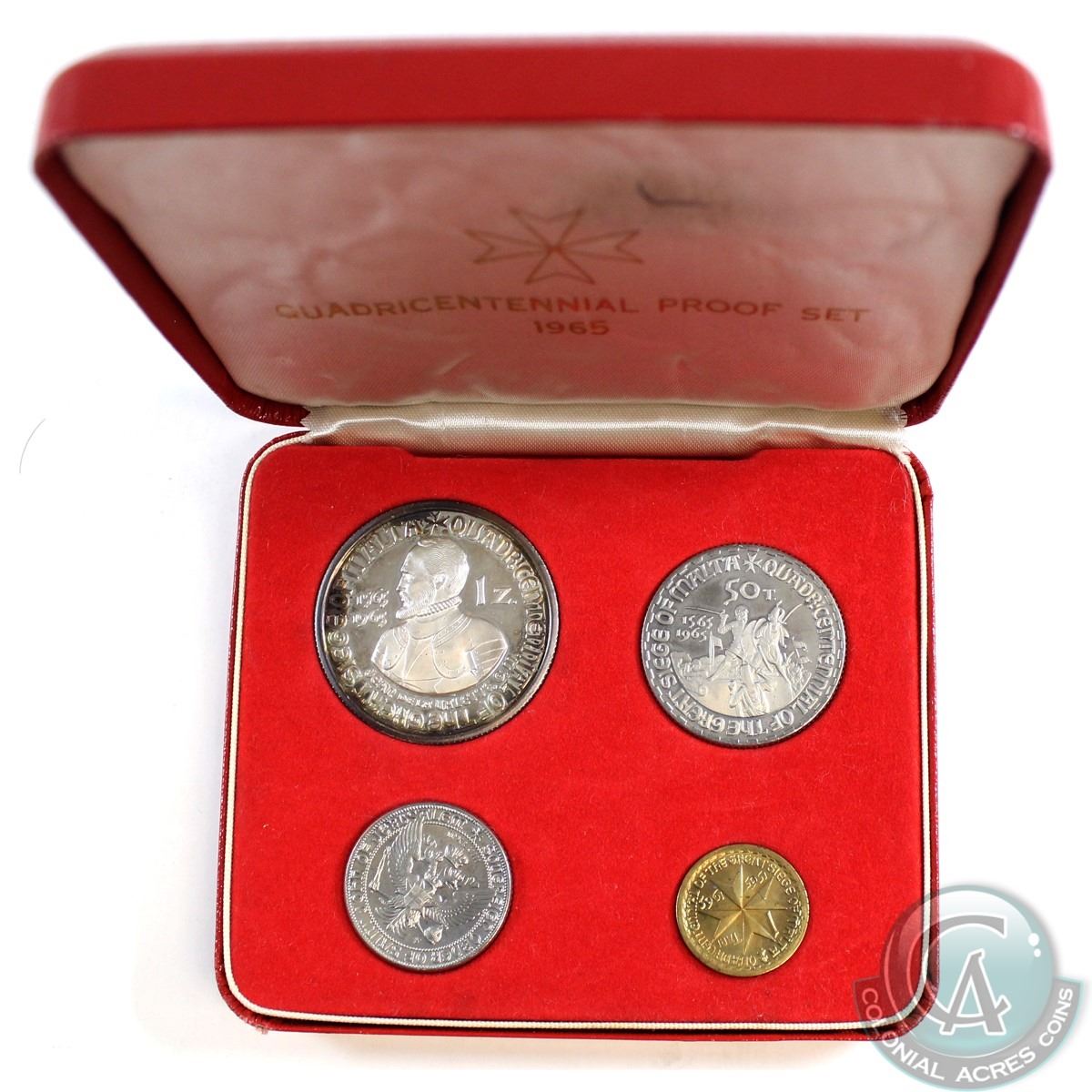 Malta; 1965 Quadricentennial 4-coin Proof Set - Order of Saint John of Jerusalem. Coins come in the original red leatherette case.