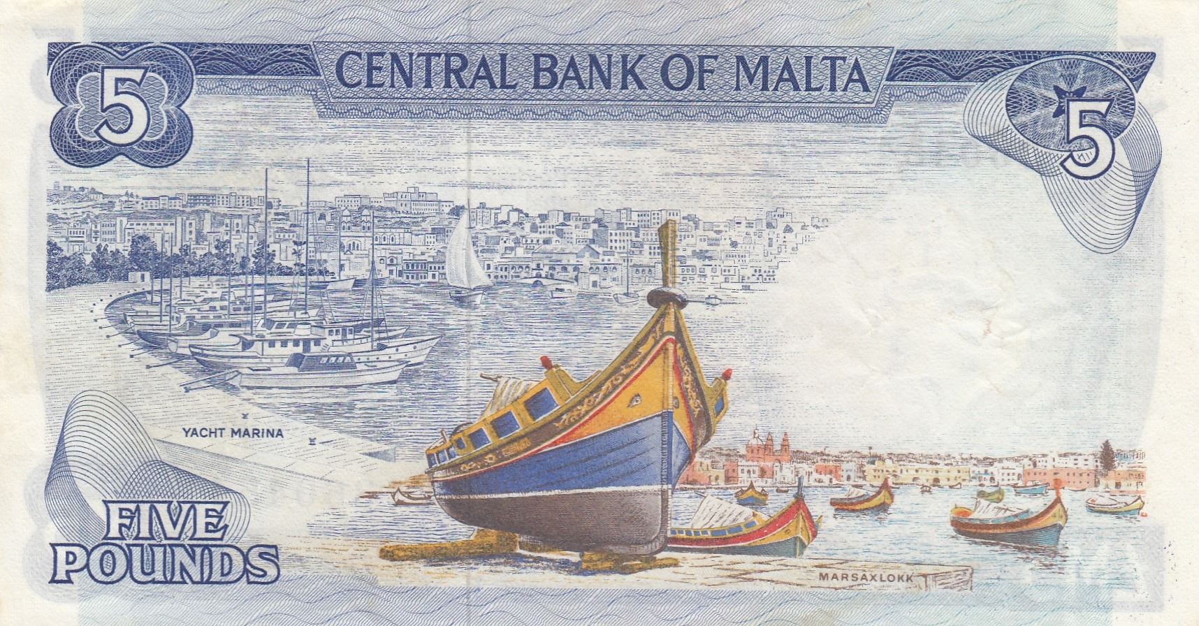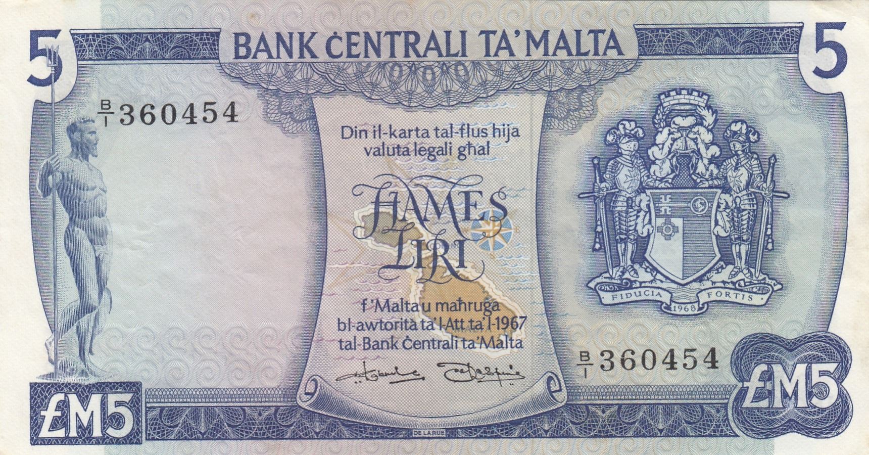 Malta, 5 Liri, 1973, XF, p32br/serial number: B/1 360454